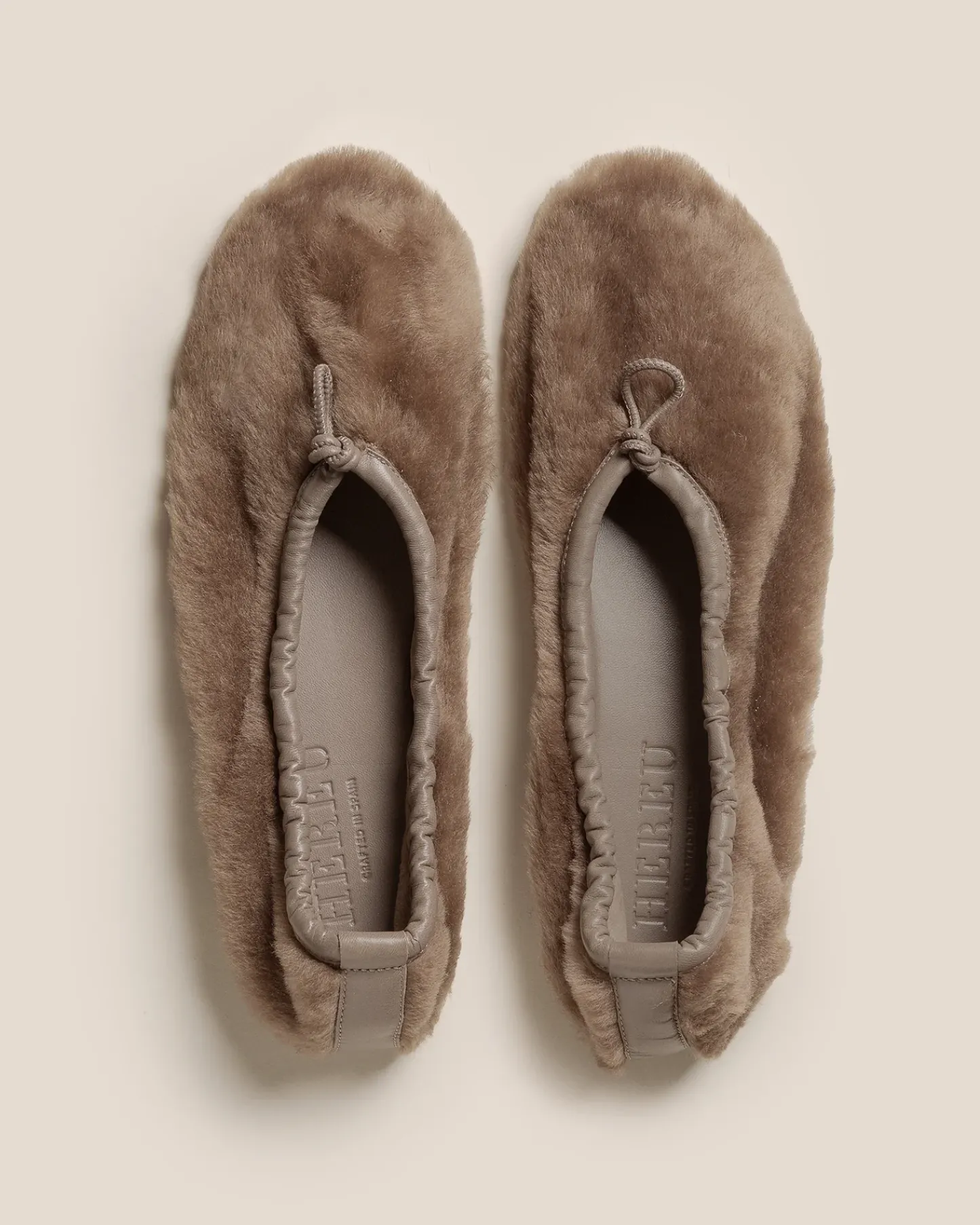 Flat pump crafted in shearling lambskin with elasticated top line.