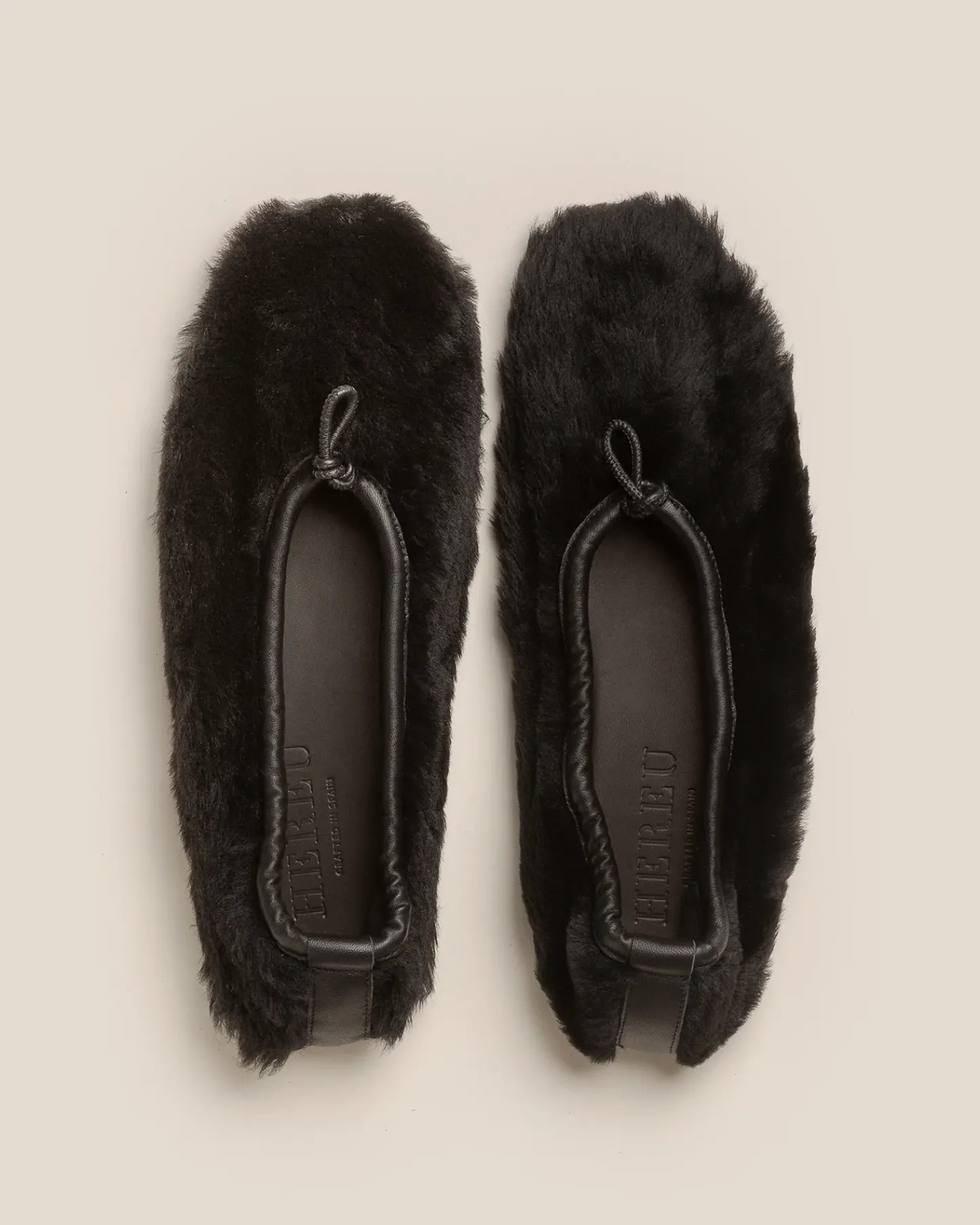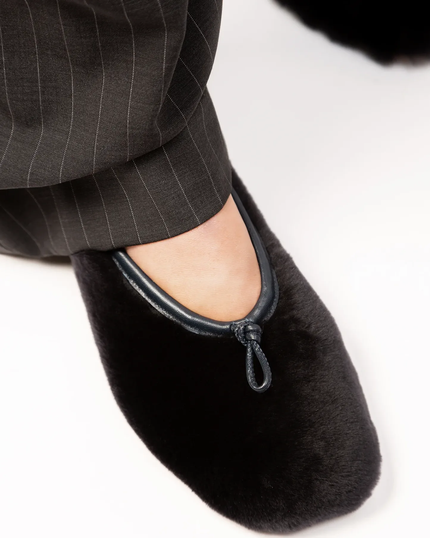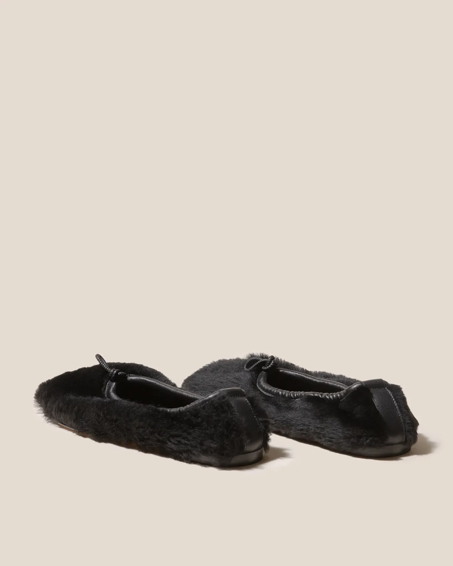 Flat pump crafted in shearling lambskin with elasticated top line.