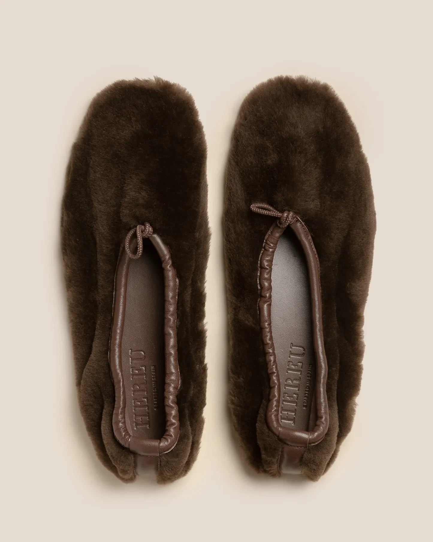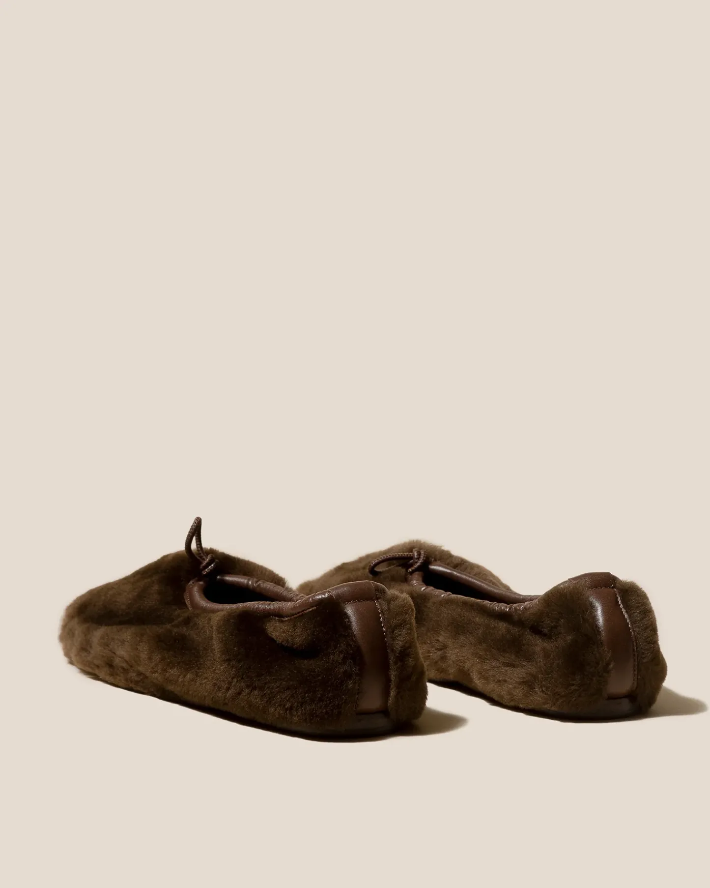 Flat pump crafted in shearling lambskin with elasticated top line.