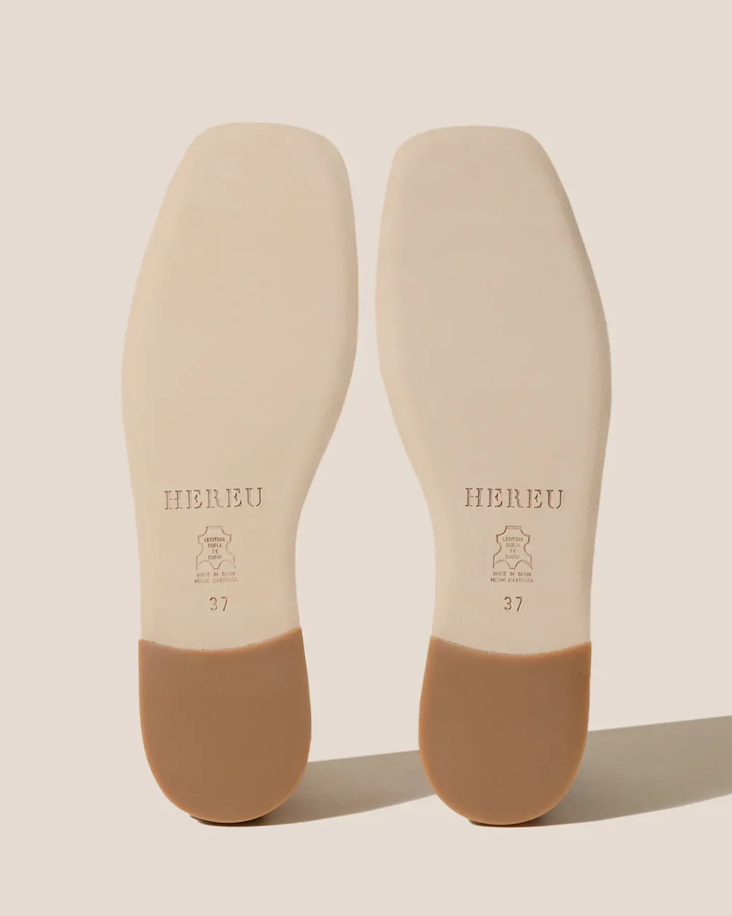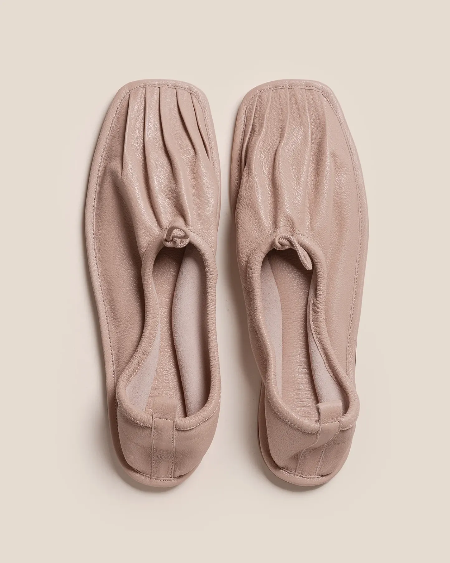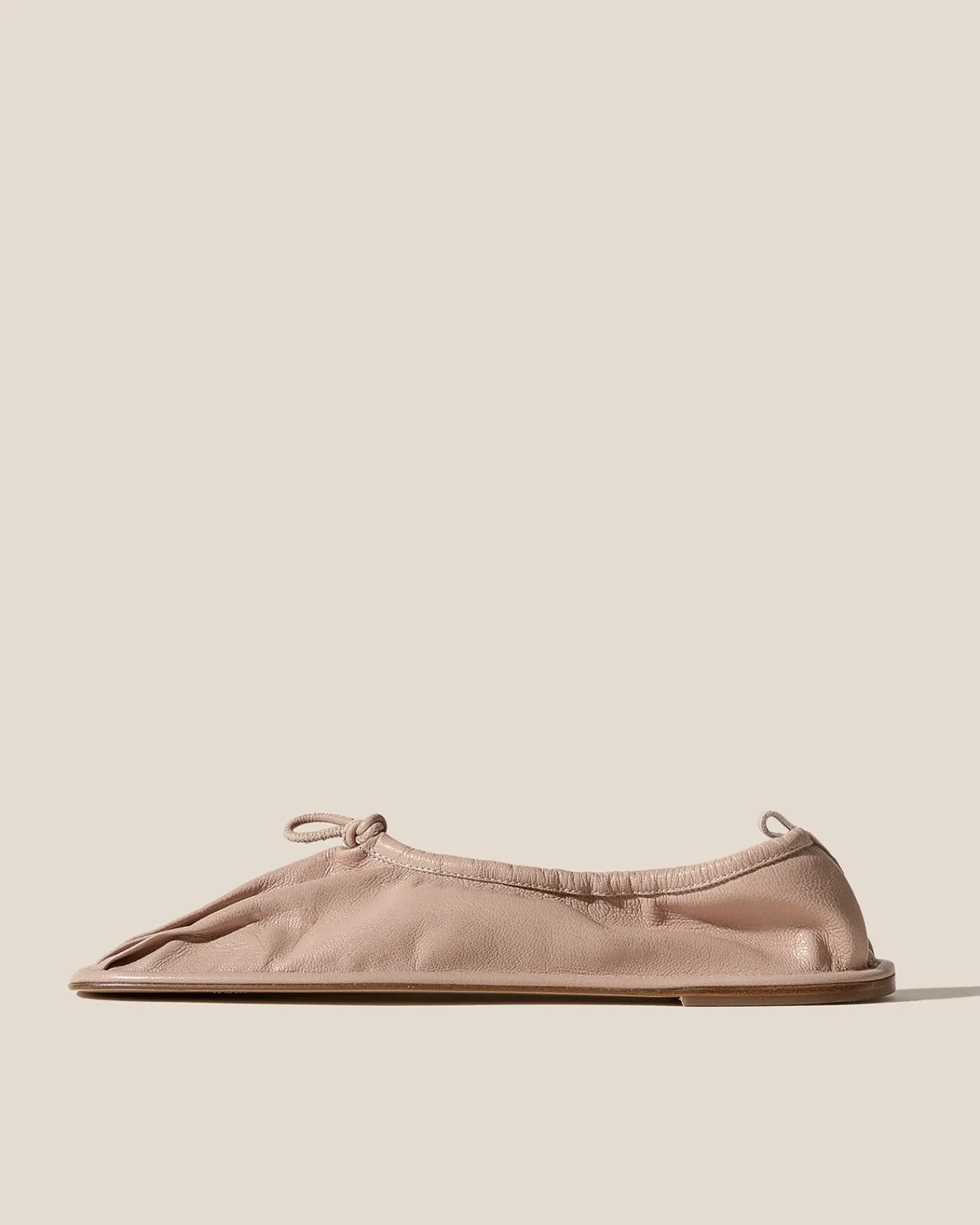 Square-toe flat pump with pleated toe detail, crafted in supple shiny lambskin.