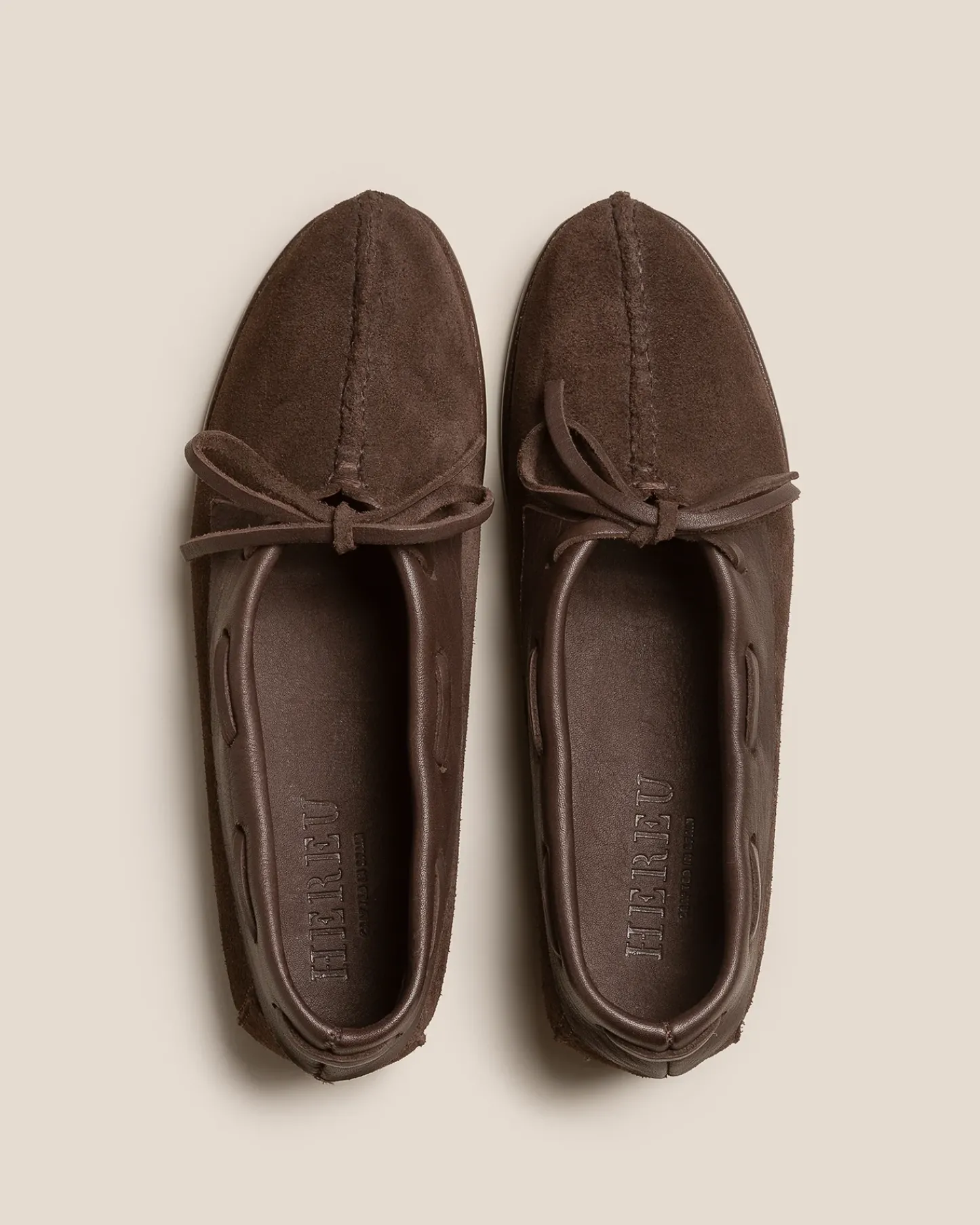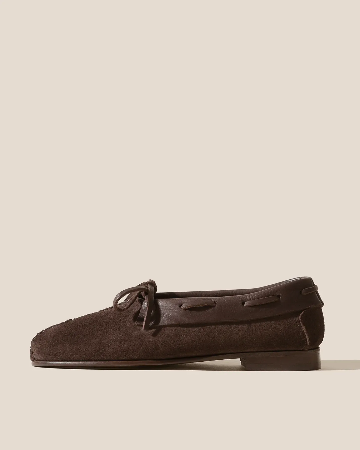 One-piece upper deconstructed babouche crafted in double-sided calf suede.