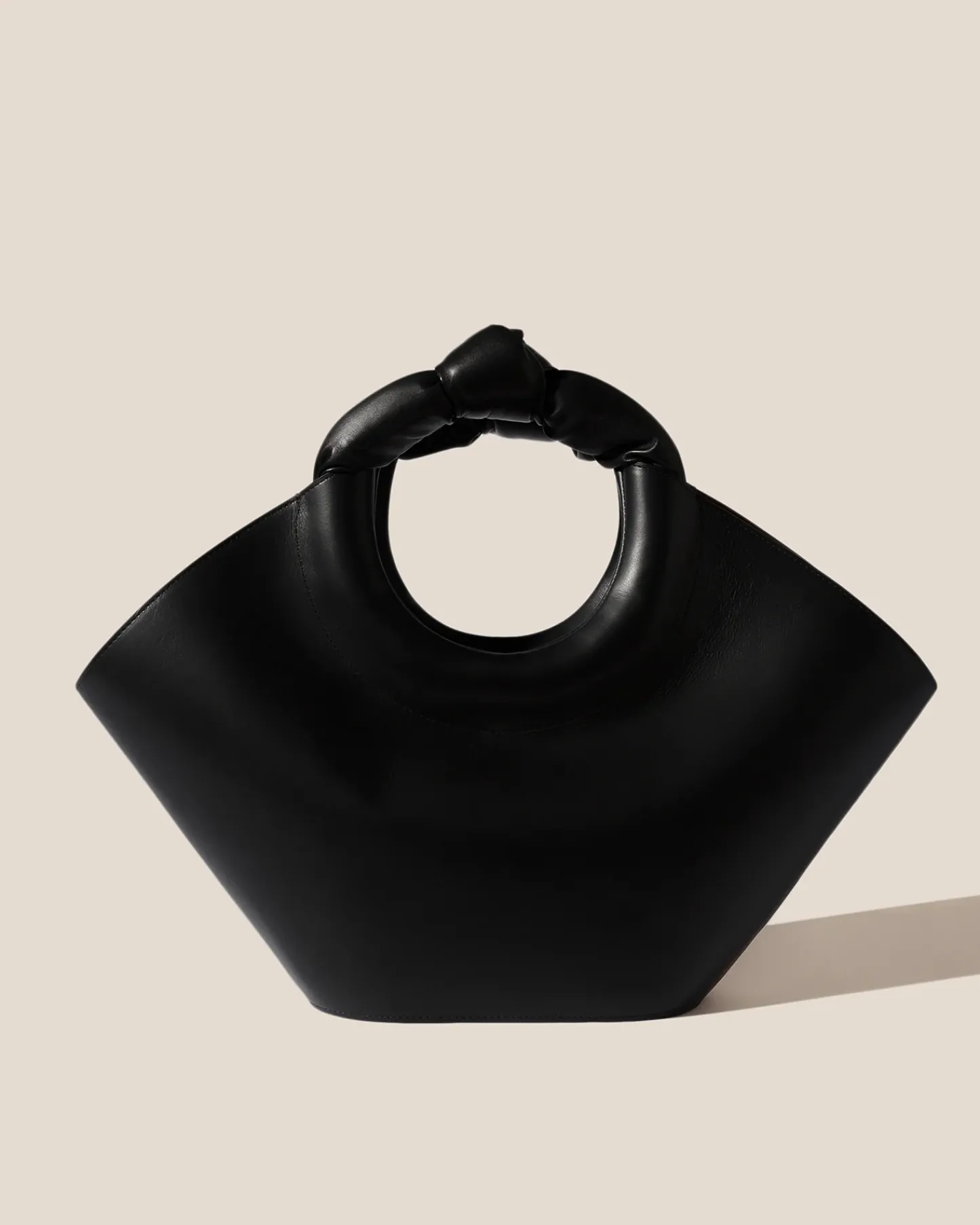 Knotted-handle basket tote crafted in Spanish calf leather with calf leather lining.