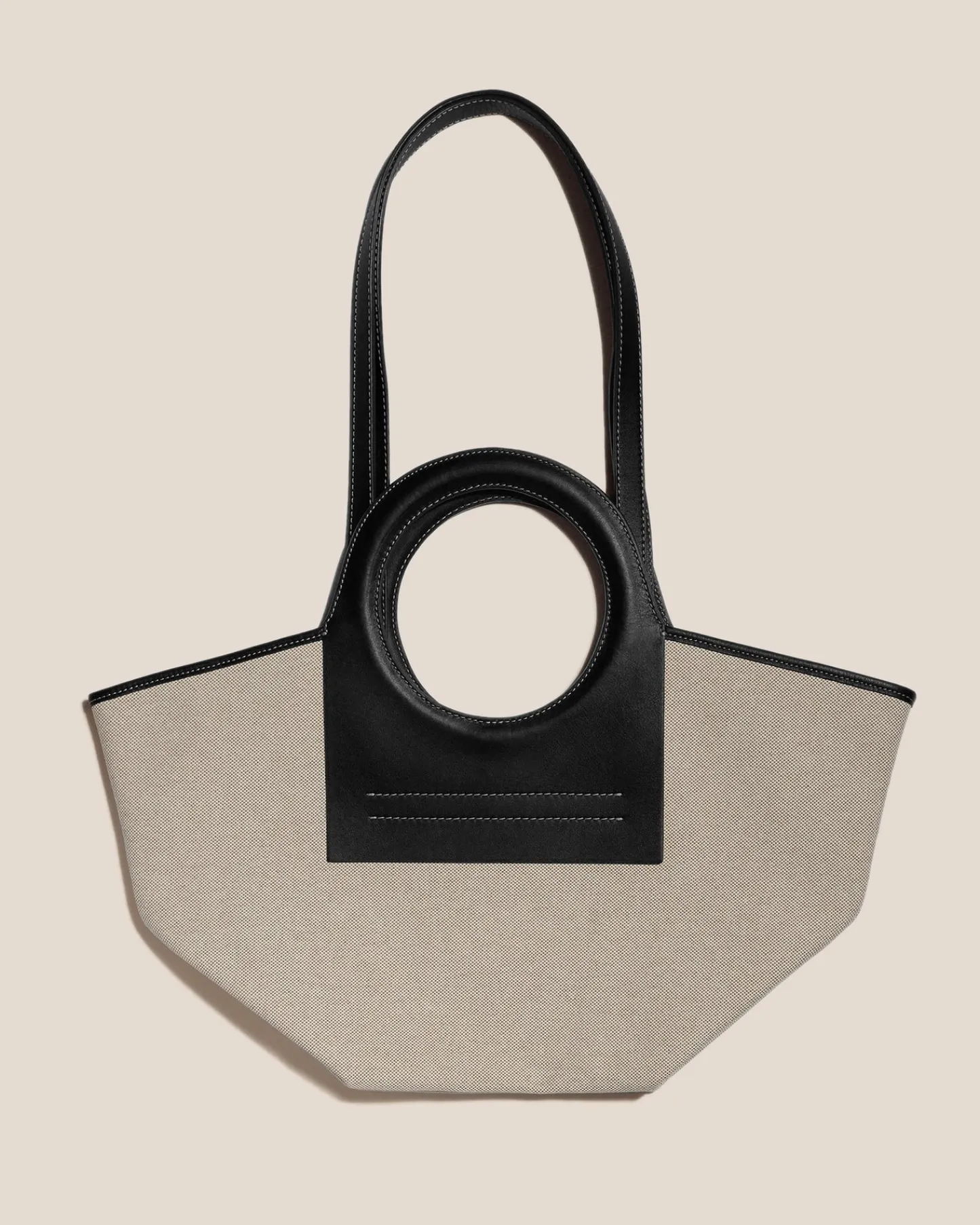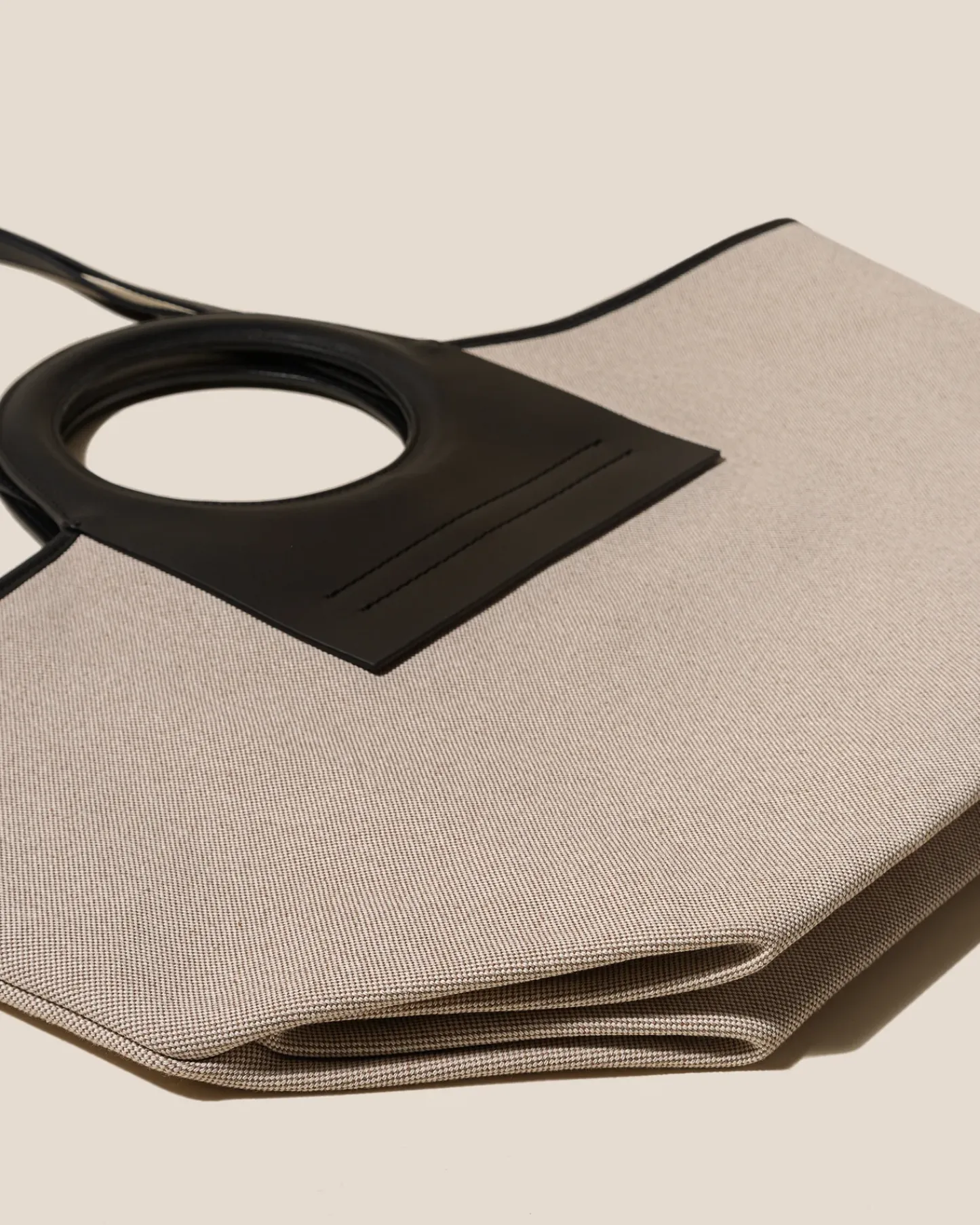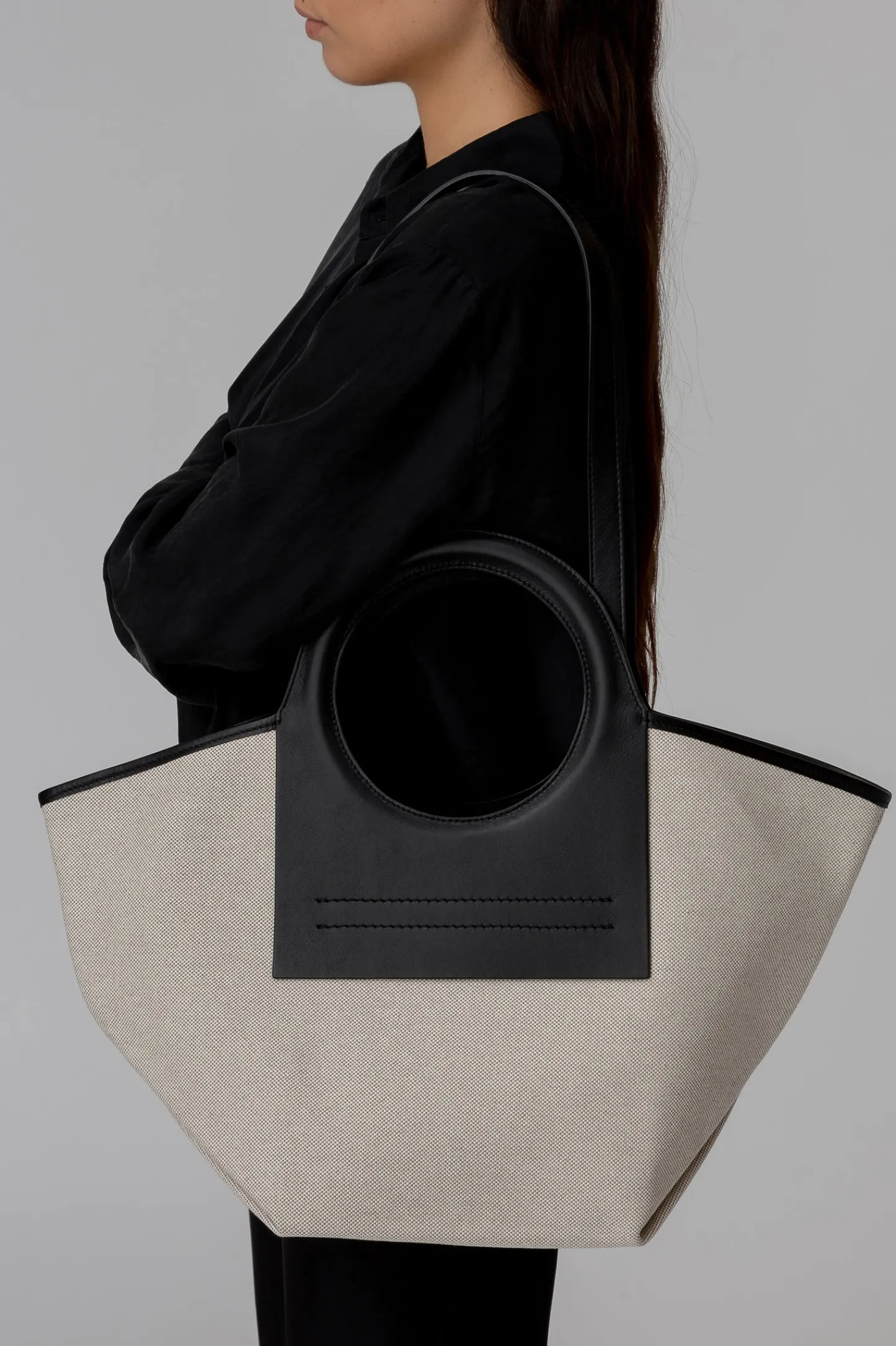 Tote bag constructed from organic textured premium canvas and trimmed with calf leather.