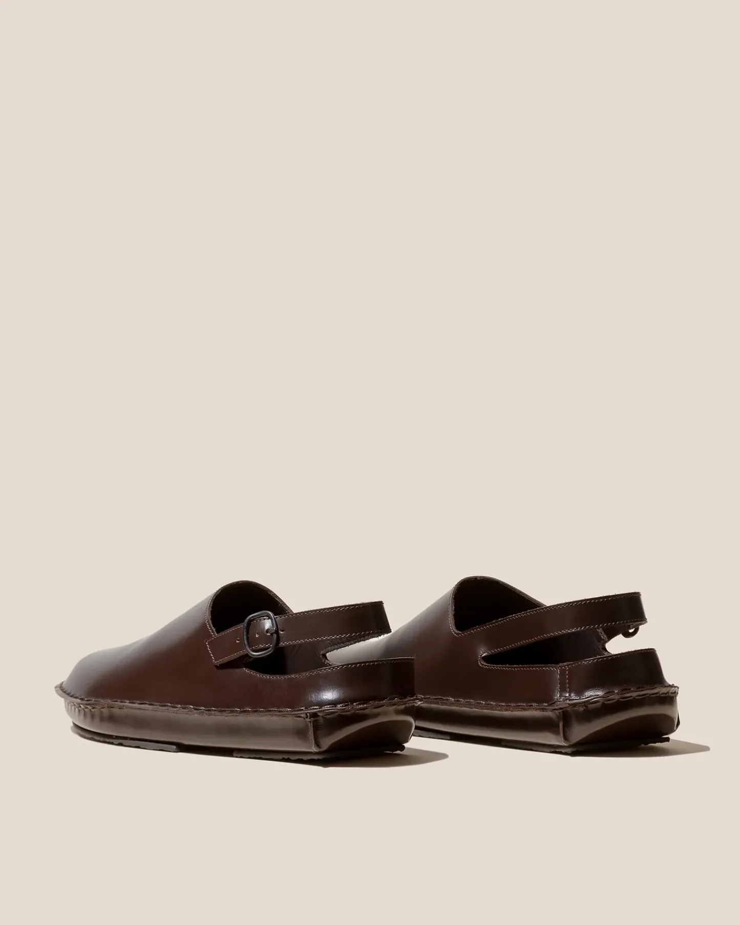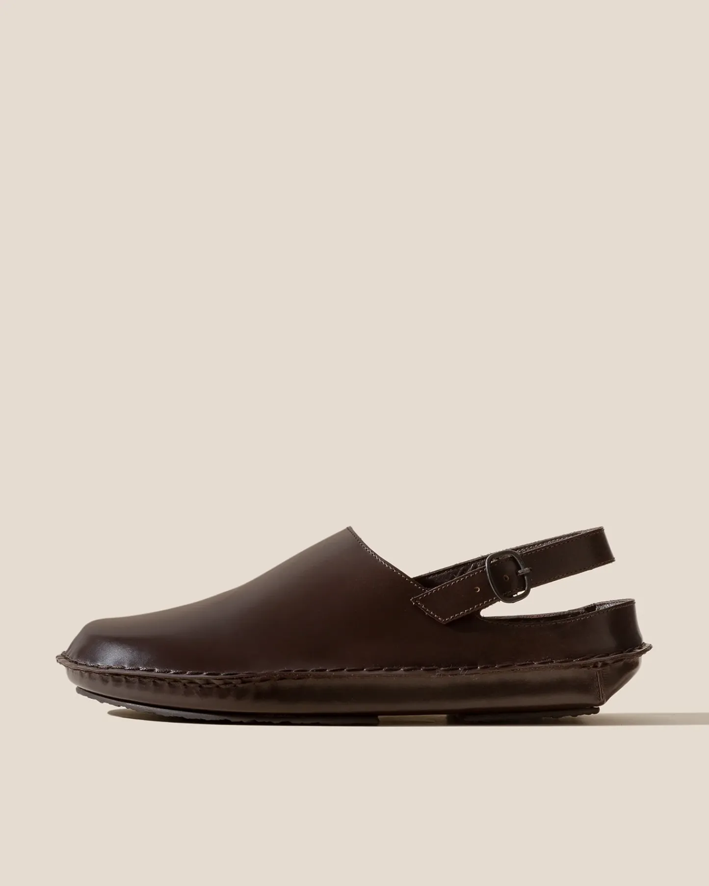 Slingback clog with whipstitch detail constructed on a lightweight wedge.