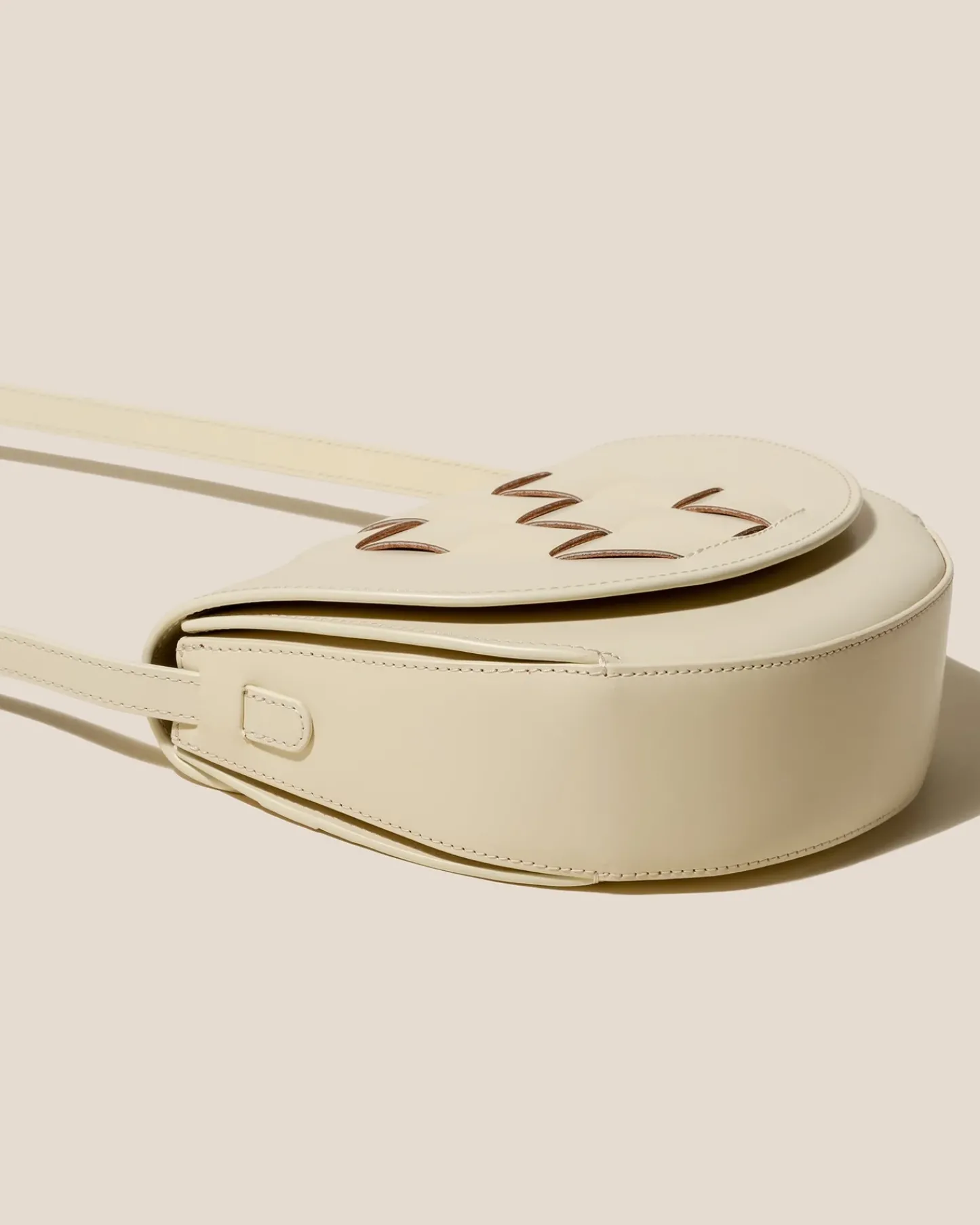 Satchel bag with interwoven front detail, crafted in Spanish leather and lined with calf suede.