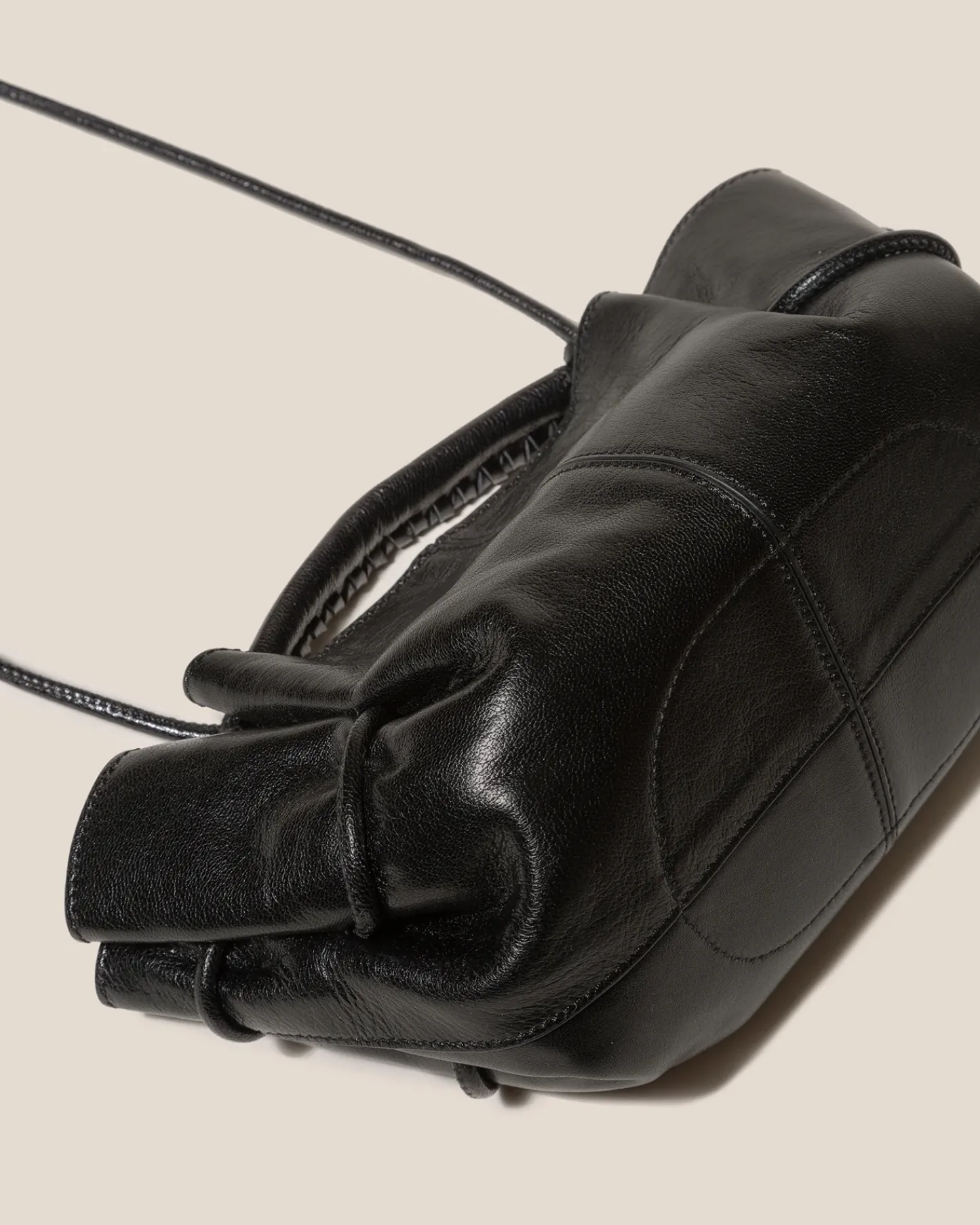 Small pleated crossbody/ handbag crafted in supple shiny lambskin.