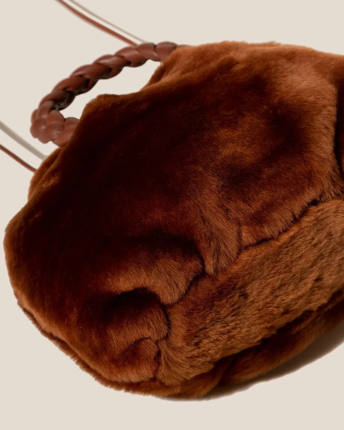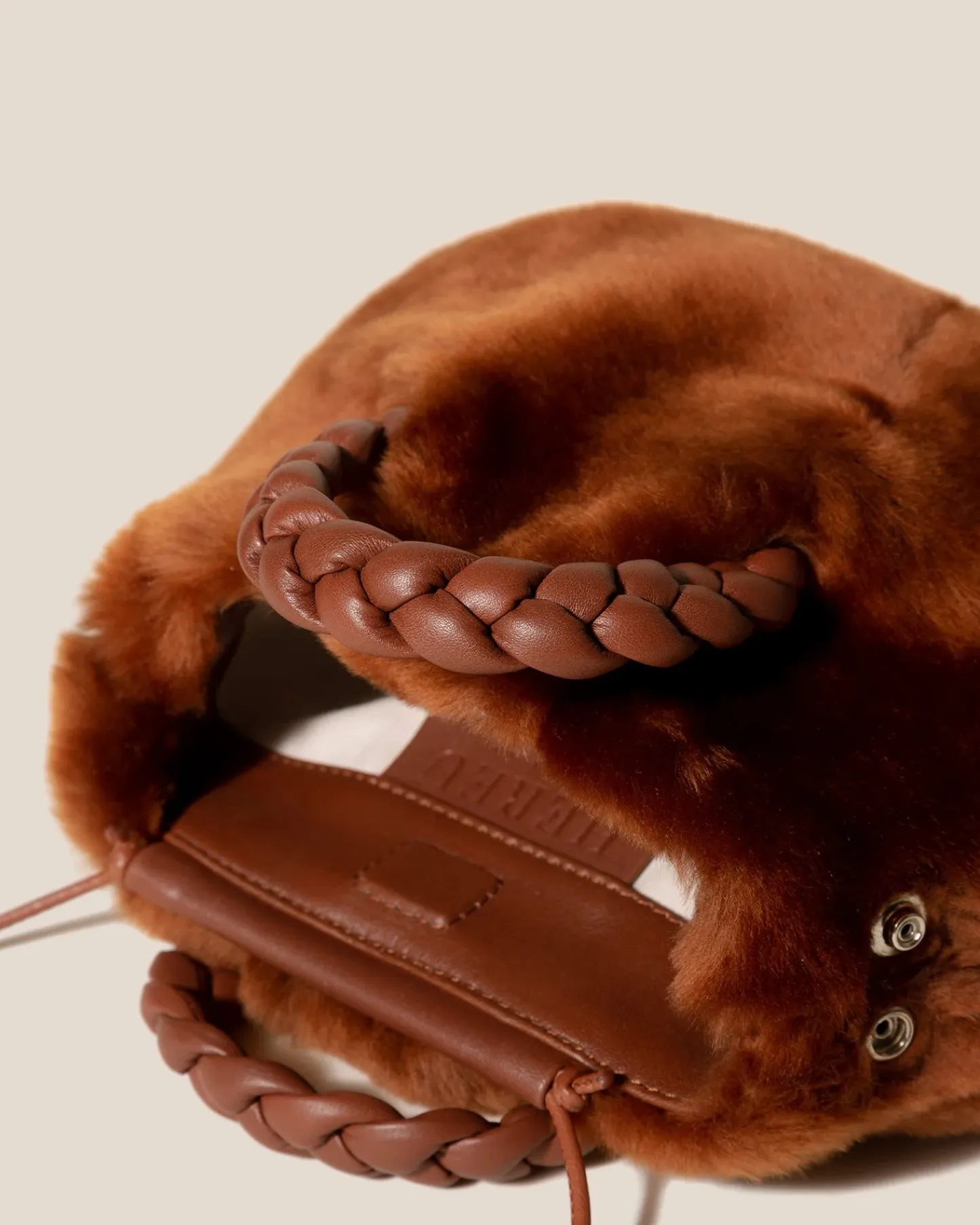 Small crossbody bag with braided leather handles, crafted in shearling sheepskin and supple lambskin.