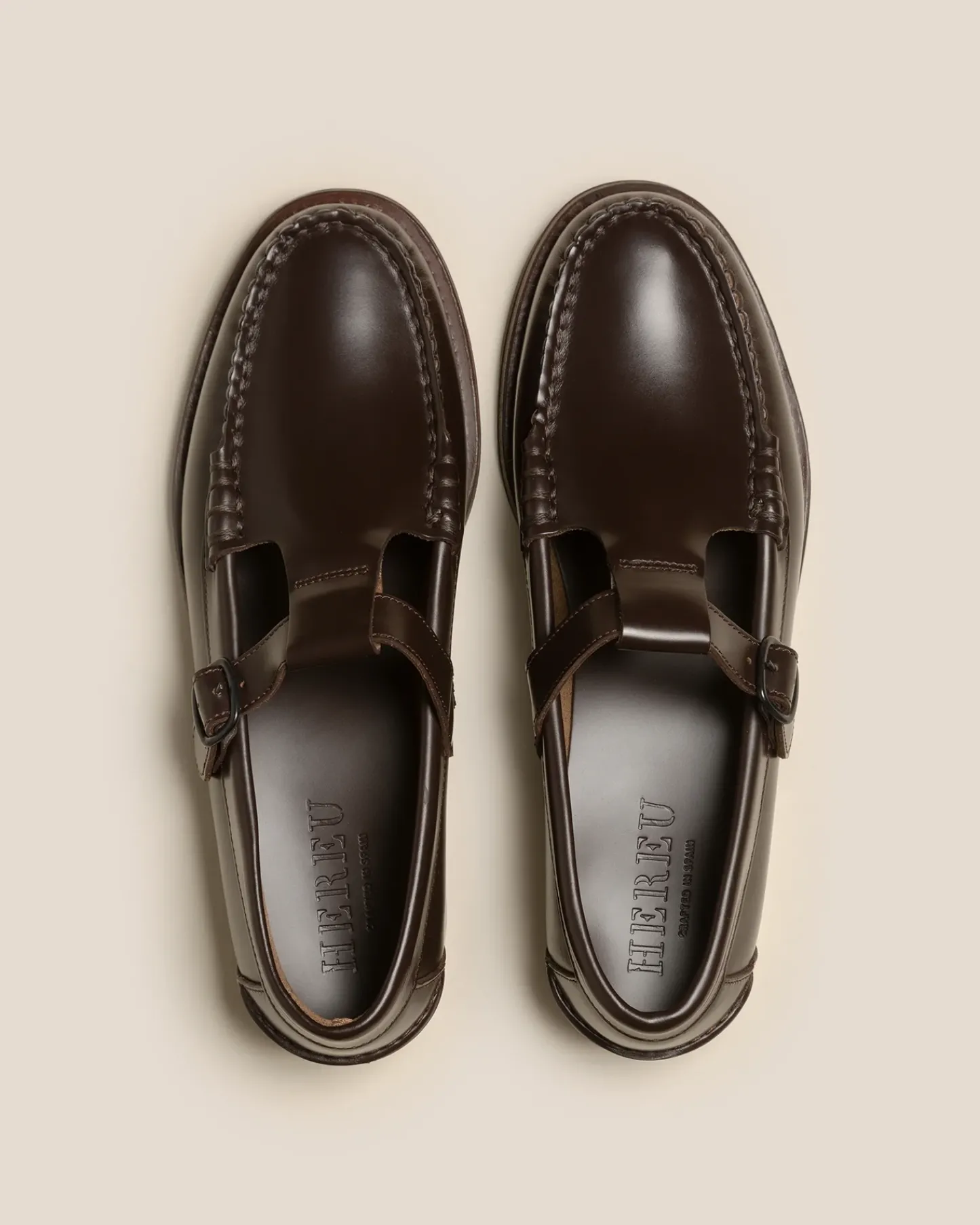 T-bar loafer crafted in Spanish calf leather. Hand-sewn using the traditional moccasin construction. The outsole is stitched to the upper for extra flexibility and durability.