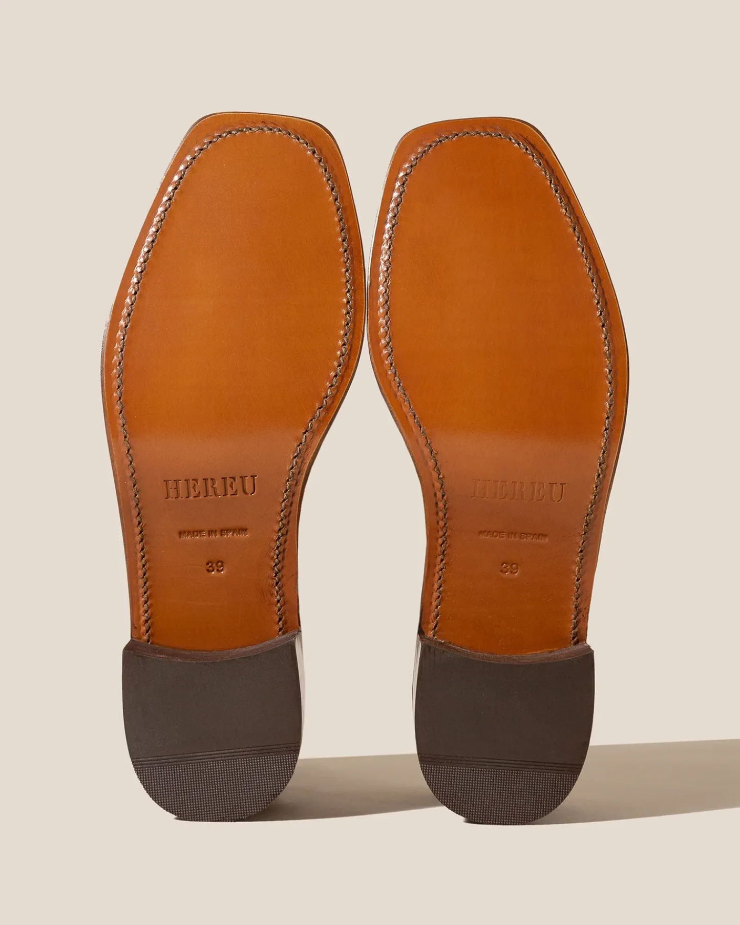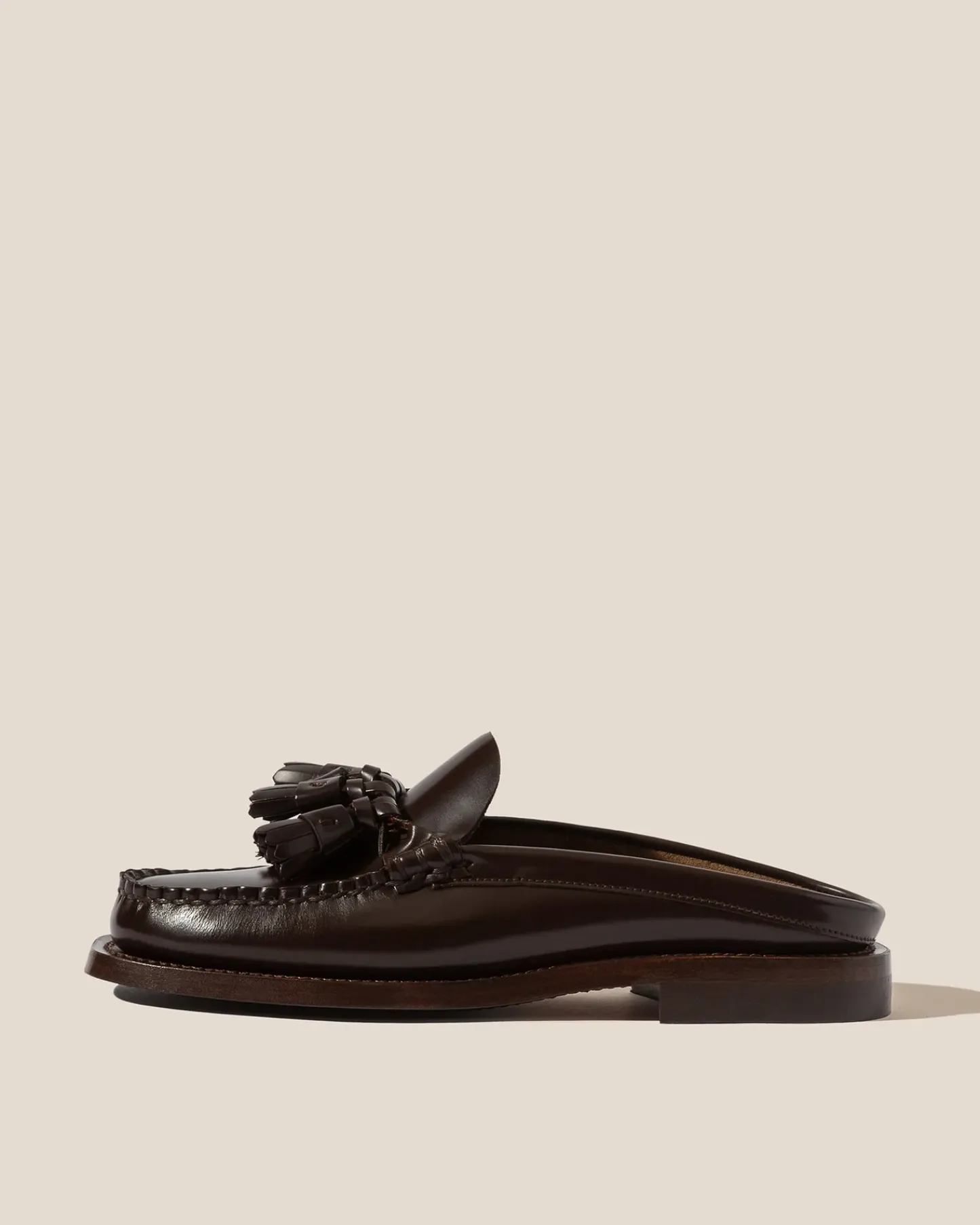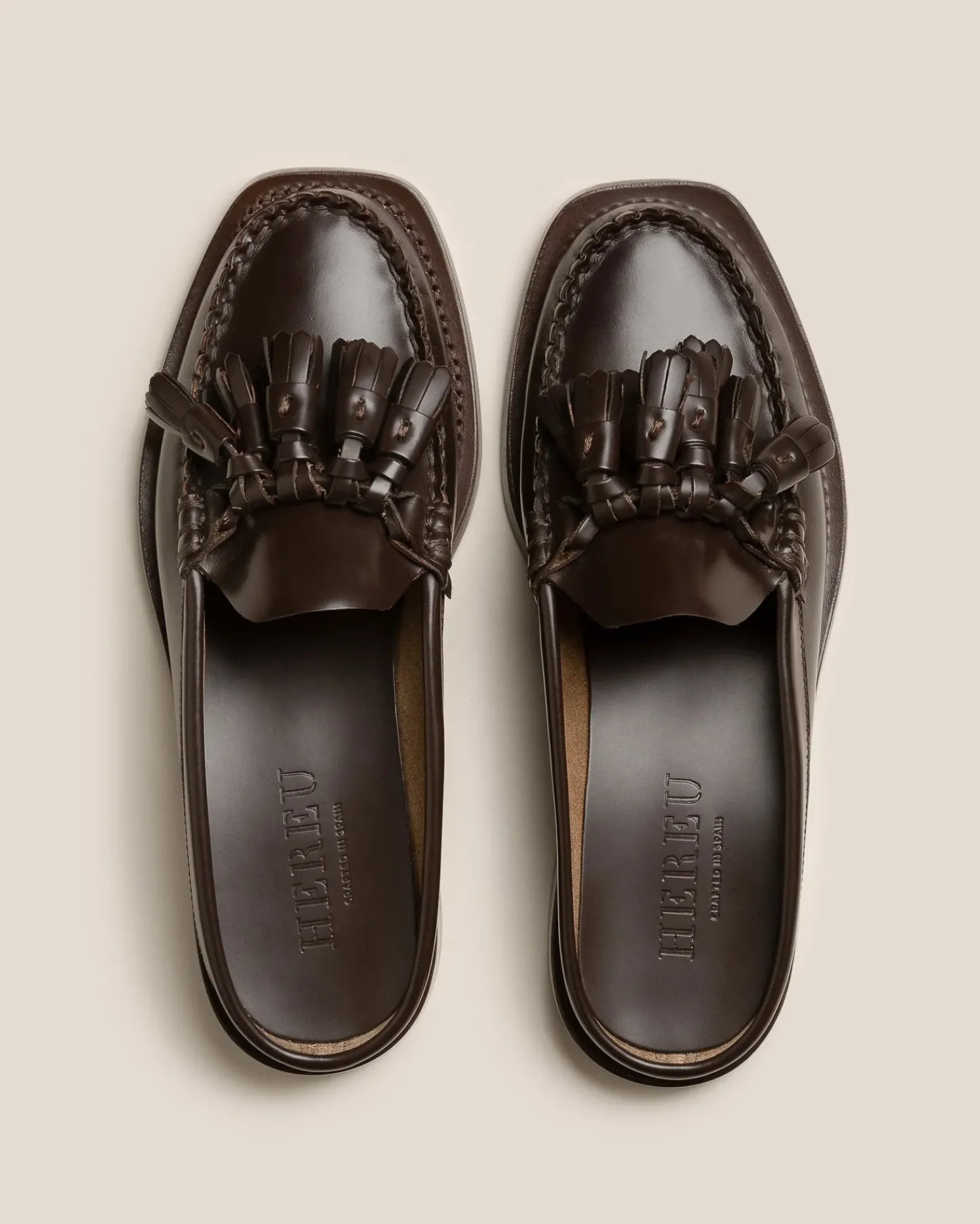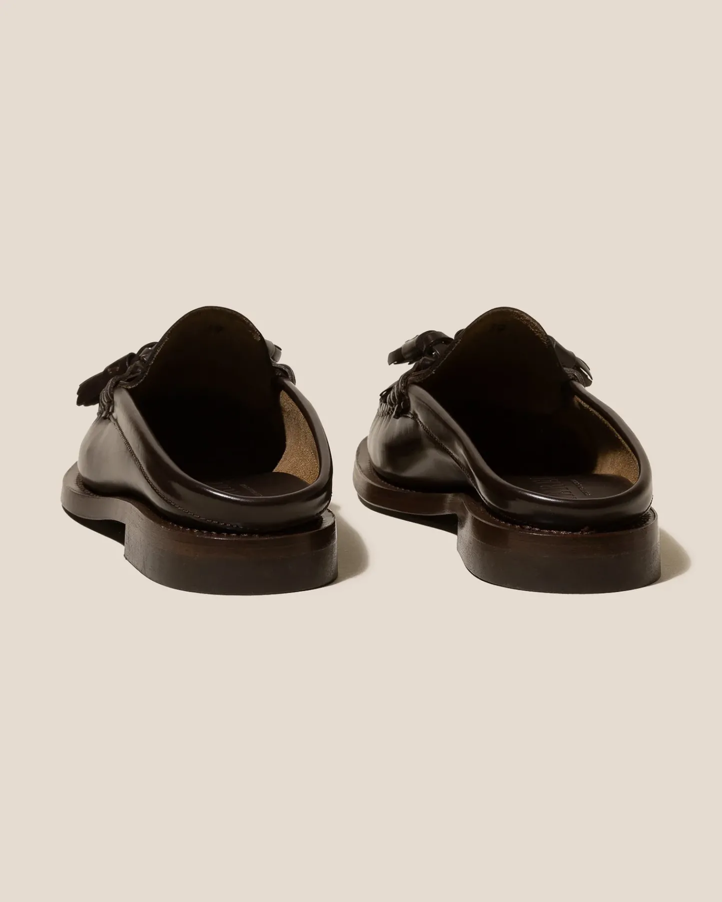 Tasseled mule loafer crafted in Spanish full grain leather. The upper has been hand sewn using the traditional moccasin construction. The outsole is stitched to the upper for extra flexibility and durability.