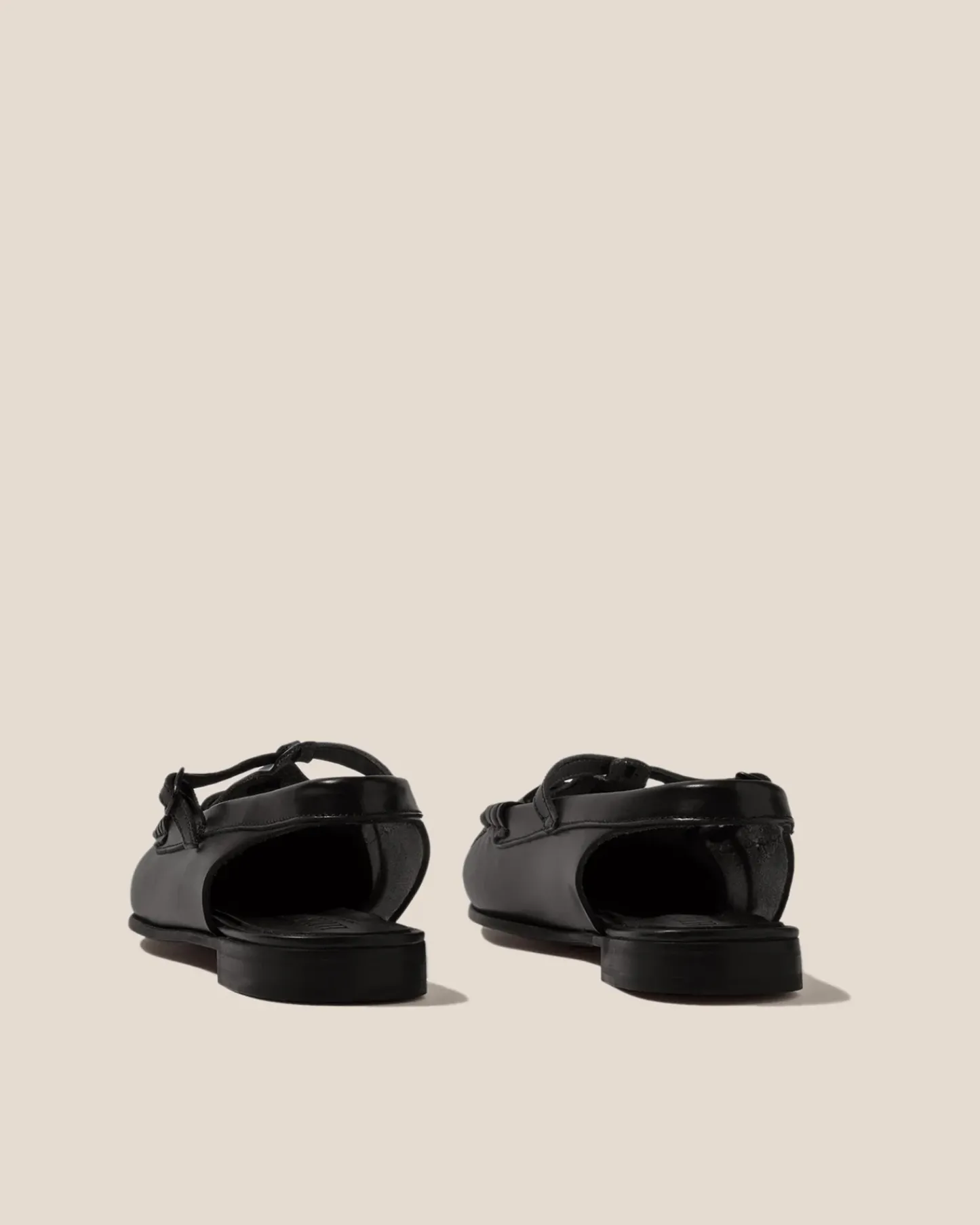 Slingback t-bar loafer with interwoven front detail, crafted in Spanish full-grain calf leather. Hand-sewn using the traditional moccasin construction. The outsole is stitched to the upper for extra flexibility and durability.