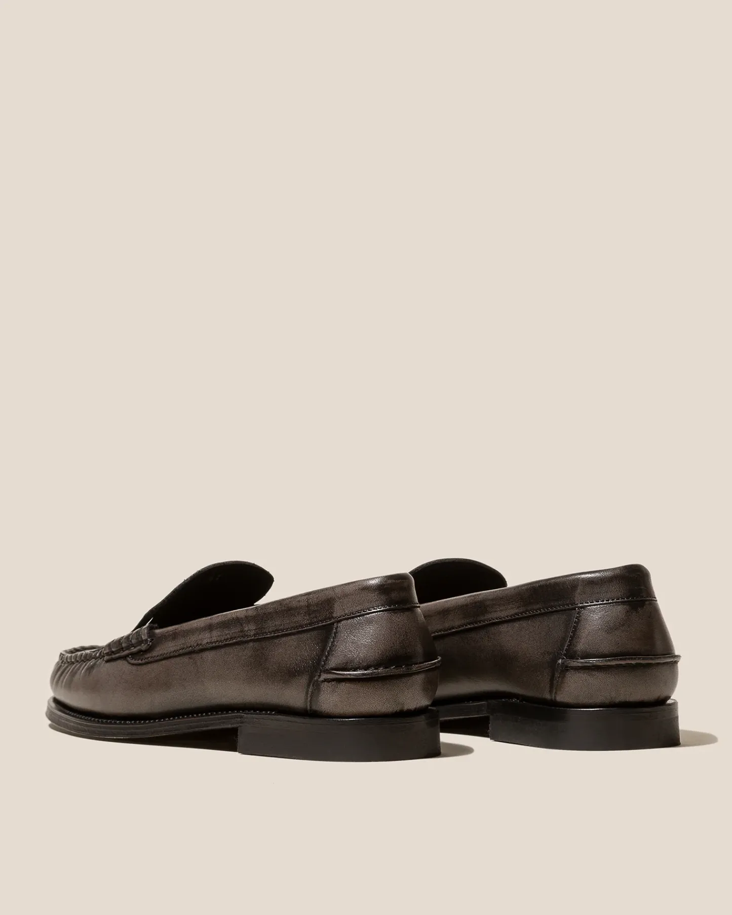 Slip-on loafer with interlaced detail crafted in duotone brushed calf leather.