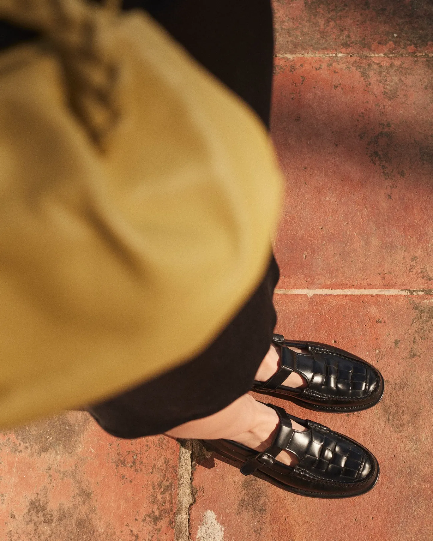 T-bar loafer with interwoven front detail crafted in Spanish full-grain calf leather. Hand-sewn using the traditional moccasin construction. The outsole is stitched to the upper for extra flexibility and durability.