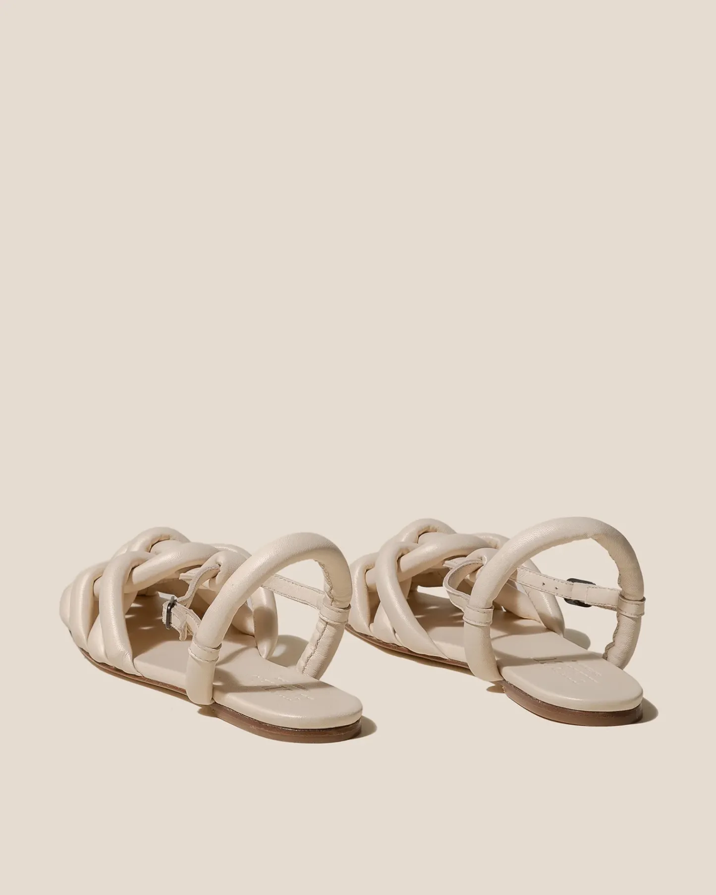 Square toe padded flat fisherman sandal crafted in soft Italian lambskin.
