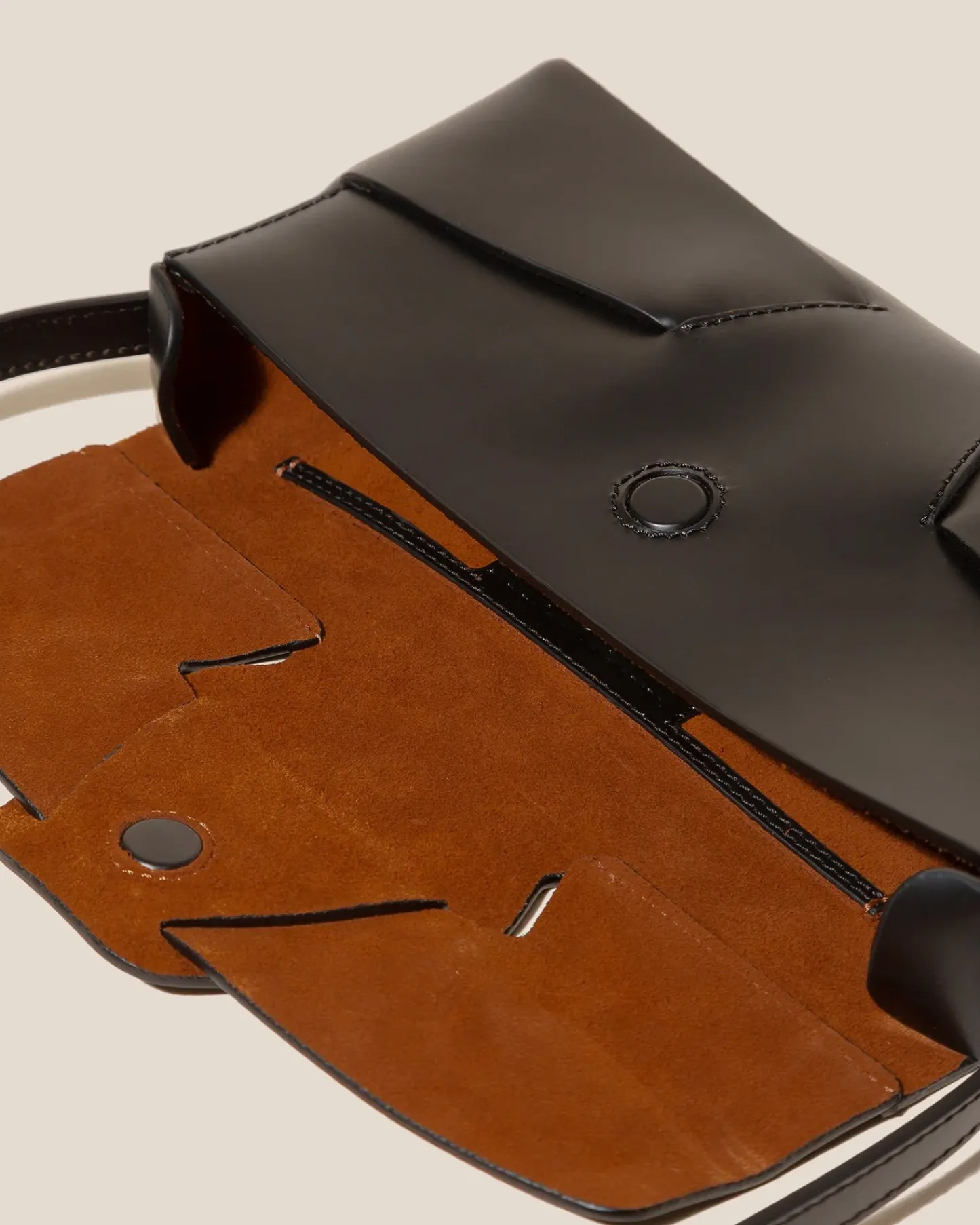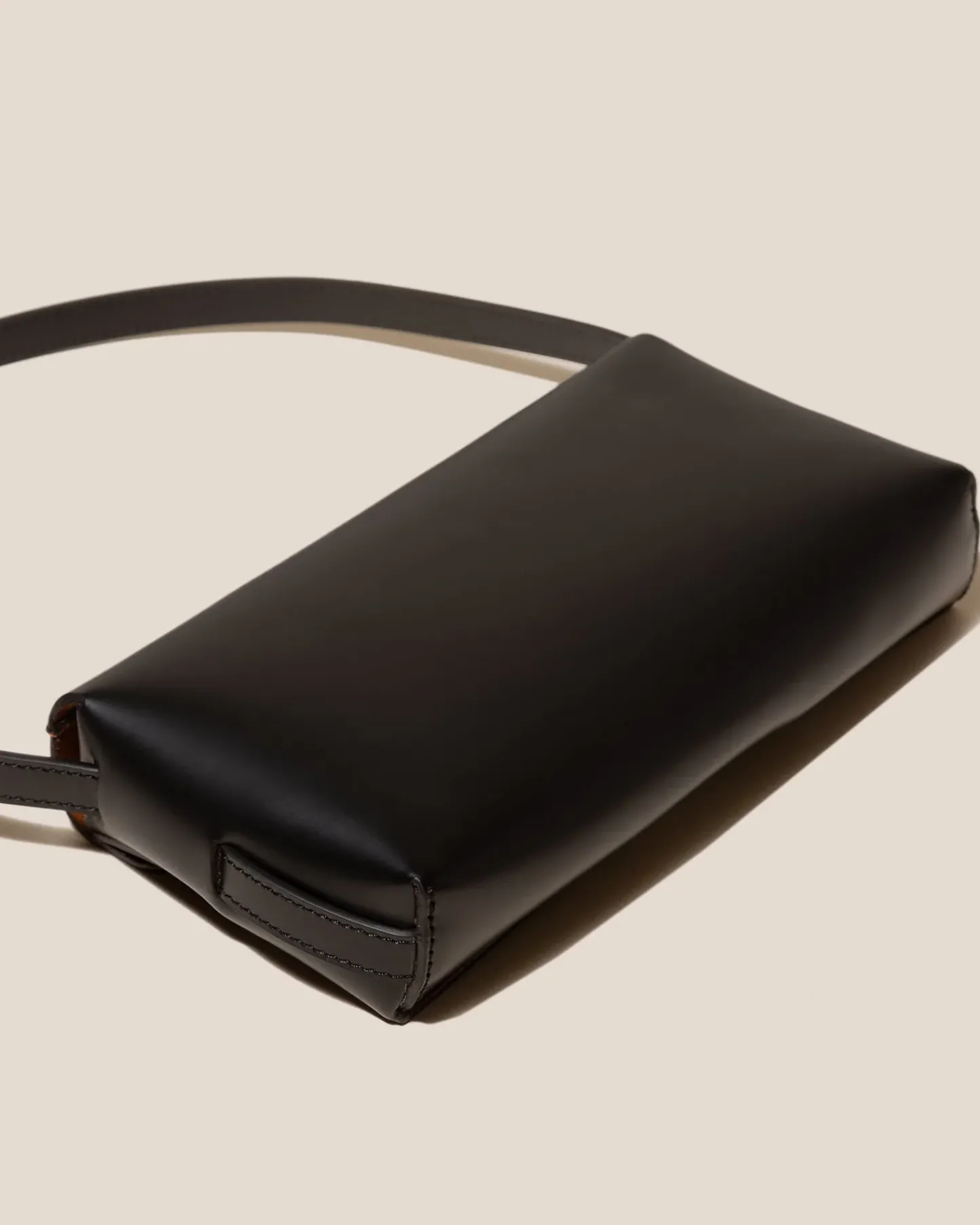 Baguette bag with woven detail in Spanish structured calf leather and lined in calf suede.