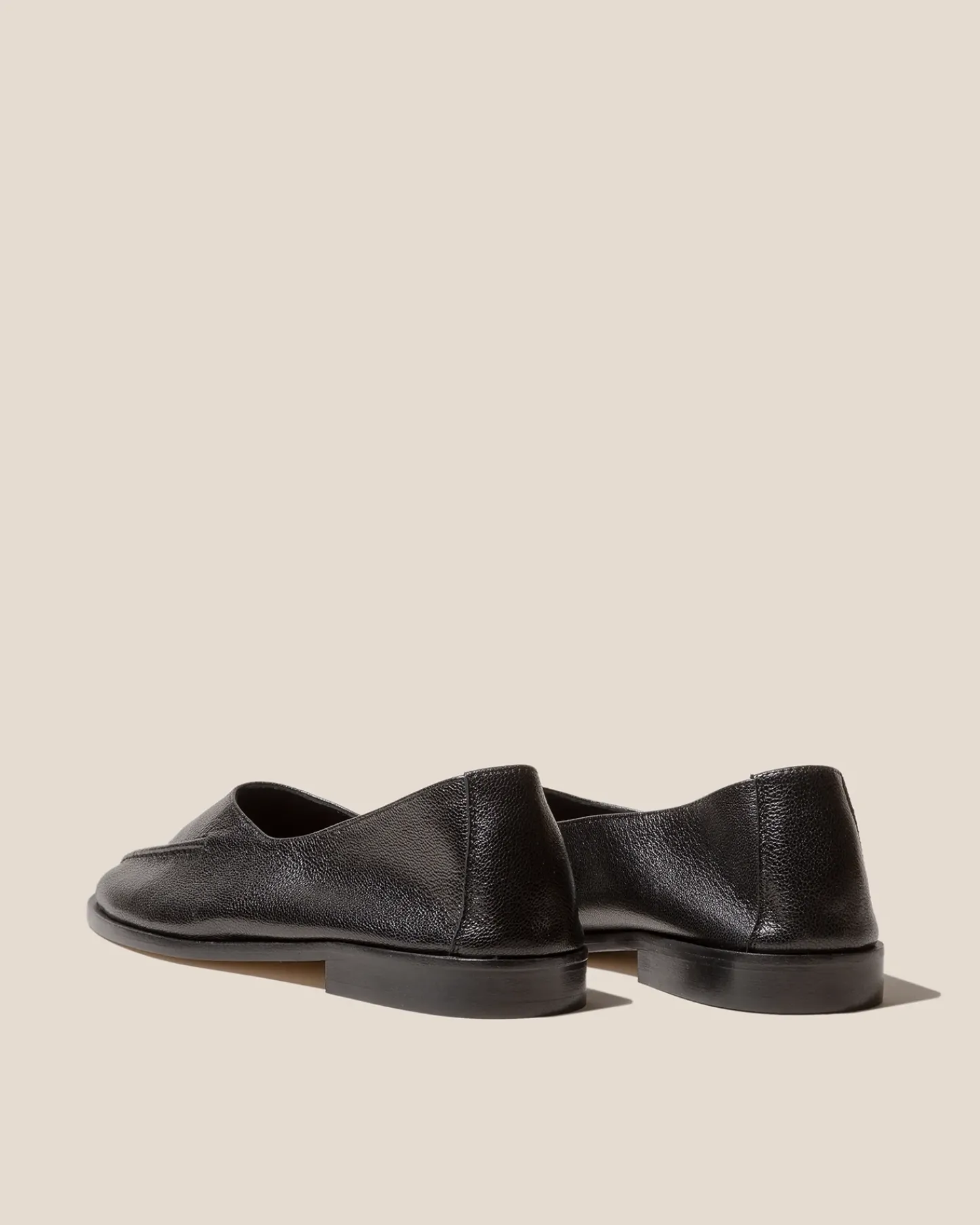 High cut deconstructed loafer with thick sole, crafted in supple shiny lambskin.