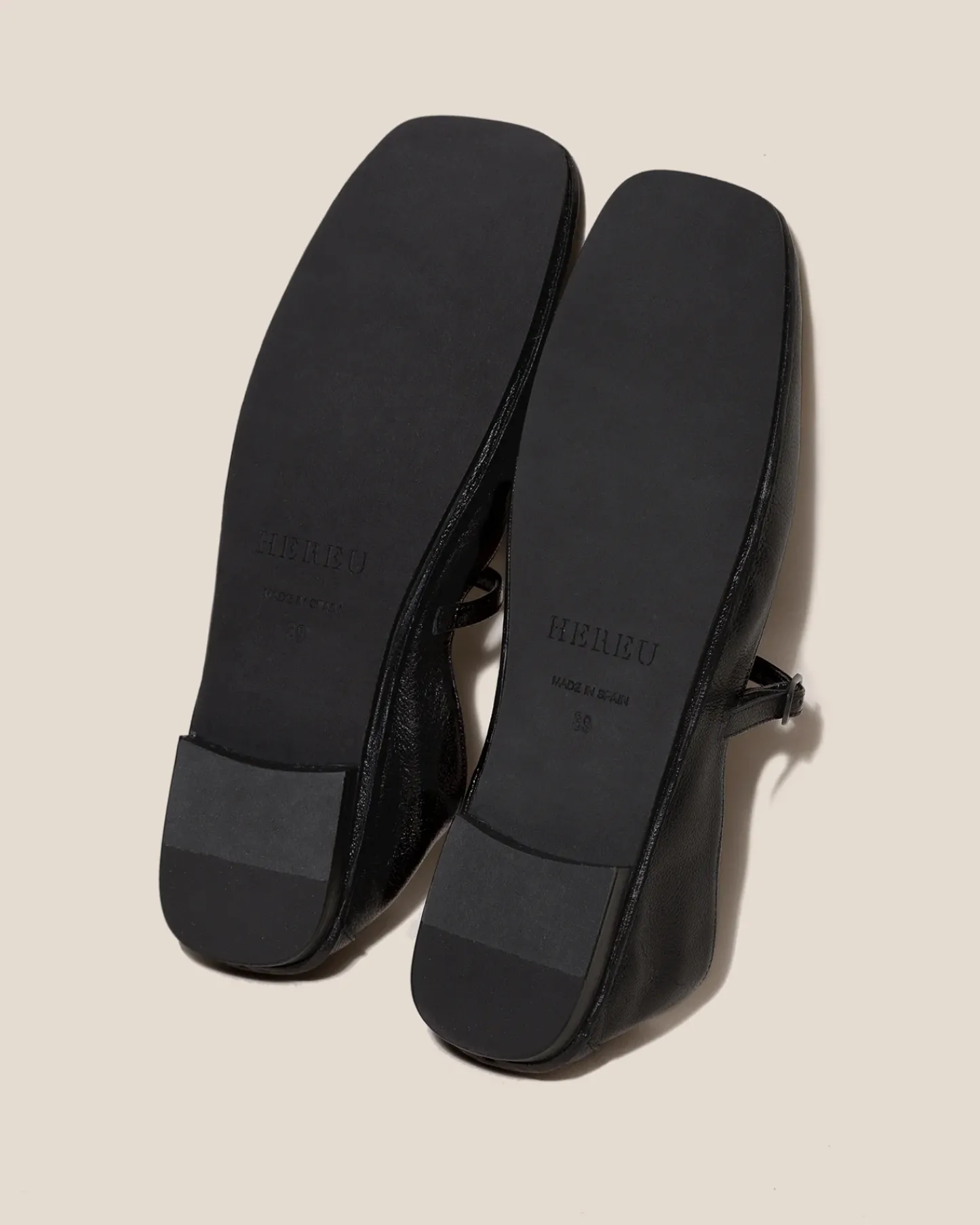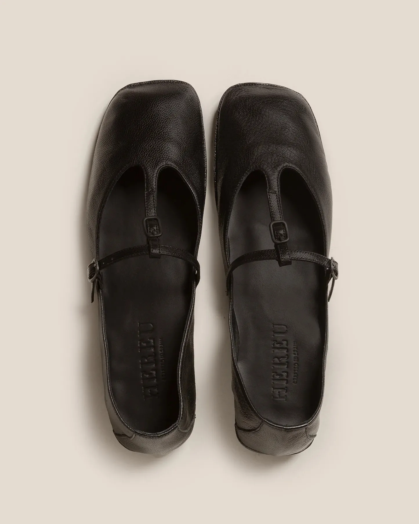 Soft T-bar with buckle detail, crafted in supple shiny lambskin.