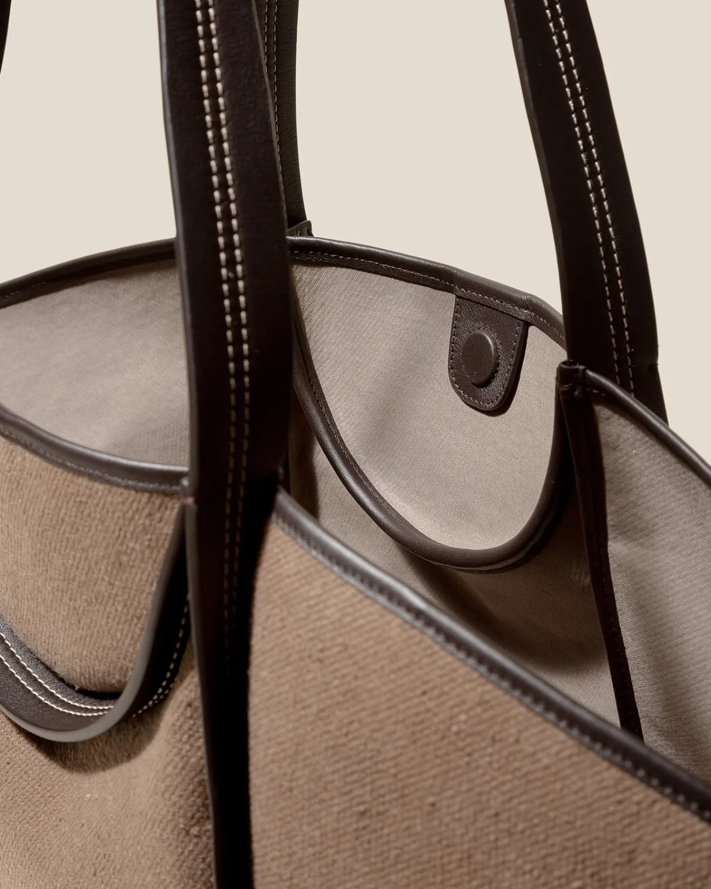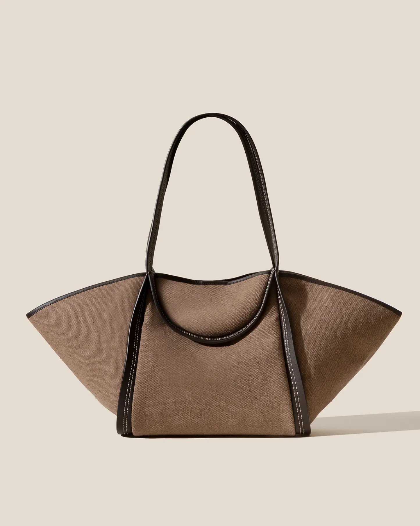 Leather-trimmed canvas basket crafted in thick canvas and soft smooth calf.